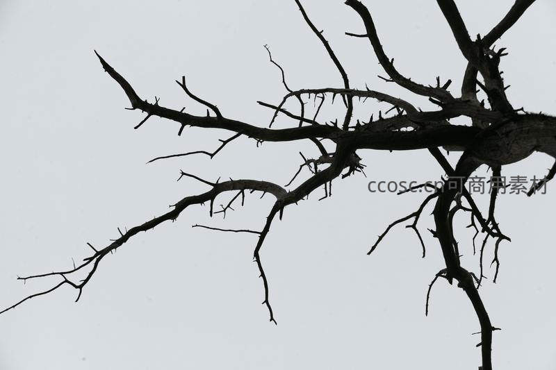 光秃的枯枝在苍白天空的映衬下,勾勒出遒劲有力的黑色线条,展现出一种原始、苍凉而又充满力量的自然之美。