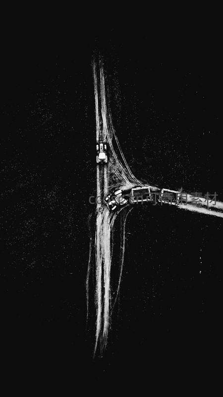 夜间高速路口车流轨迹航拍