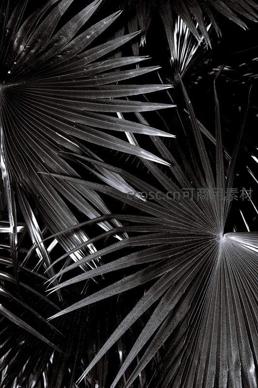 棕榈叶的黑白纹理与光影