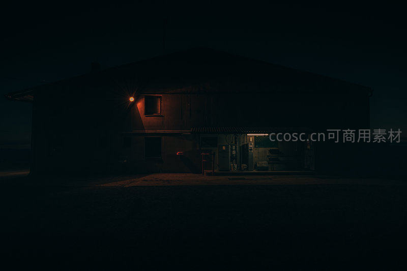 夜色中的孤寂小屋,一盏暖灯照亮寂静