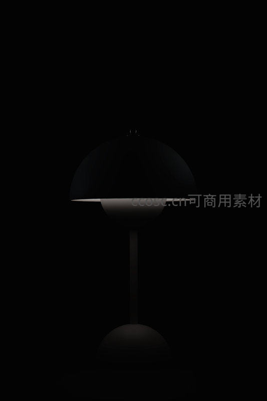 一盏造型简约的黑色台灯在纯黑背景中散发柔和光晕,凸显其流畅线条与现代设计感,是家居美学的点睛之笔。