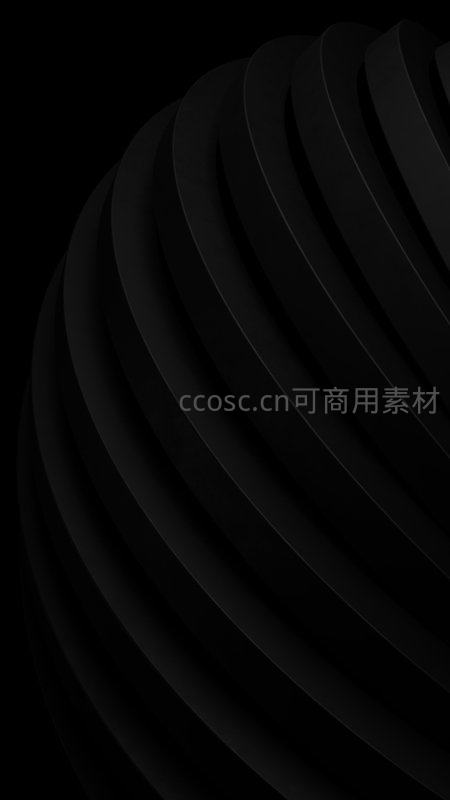 多个黑色弧形条带环绕成球状结构,流畅的曲线与层叠的阴影共同塑造出优雅的三维形态,体现现代抽象艺术的设计语言。