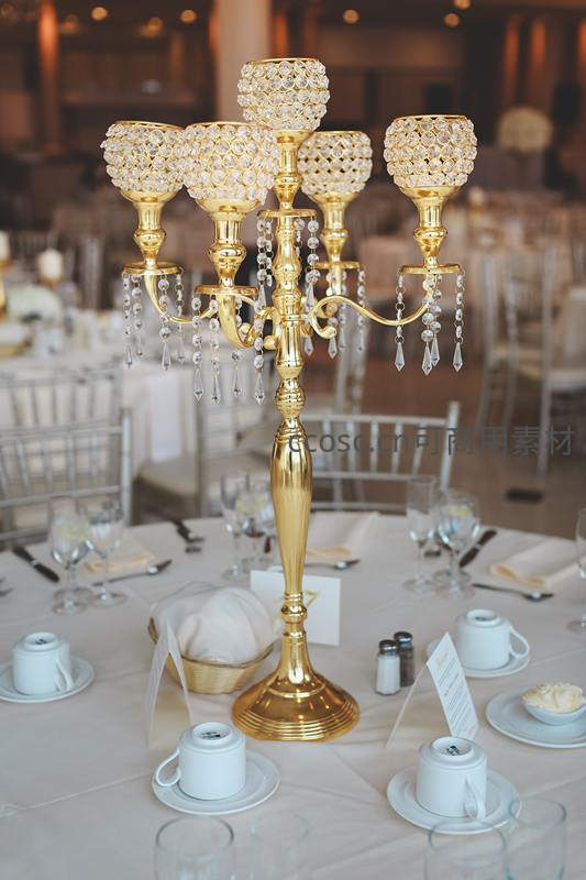 金色水晶烛台点缀奢华宴会餐桌