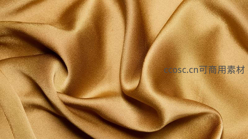 一张高分辨率微距照片,捕捉了金色丝绸面料自然垂坠形成的流畅褶皱与柔和光泽,细腻的纹理和丝滑的质感展现出材料本身的高贵与优雅。