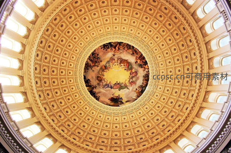 宏伟穹顶壁画与古典建筑细节仰拍