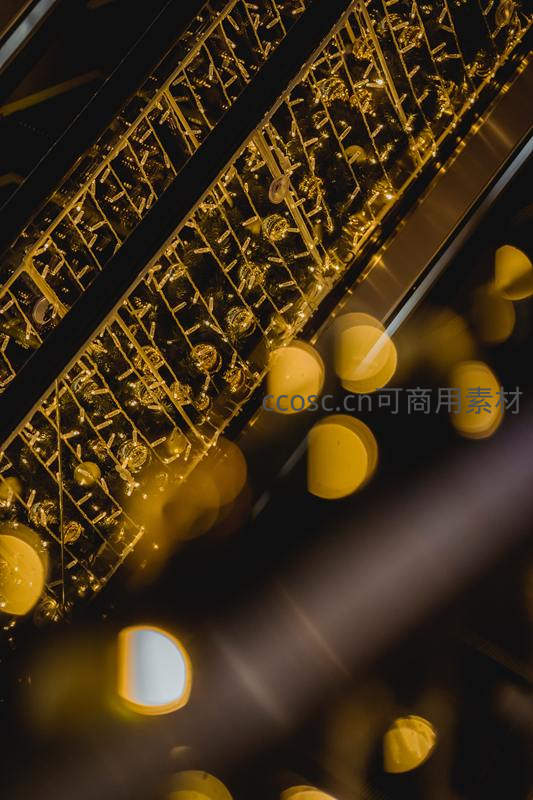 深色背景下,金色光斑与精密金属网格交织,营造出梦幻而富有科技感的视觉效果,模糊前景增添了画面的层次与神秘感。