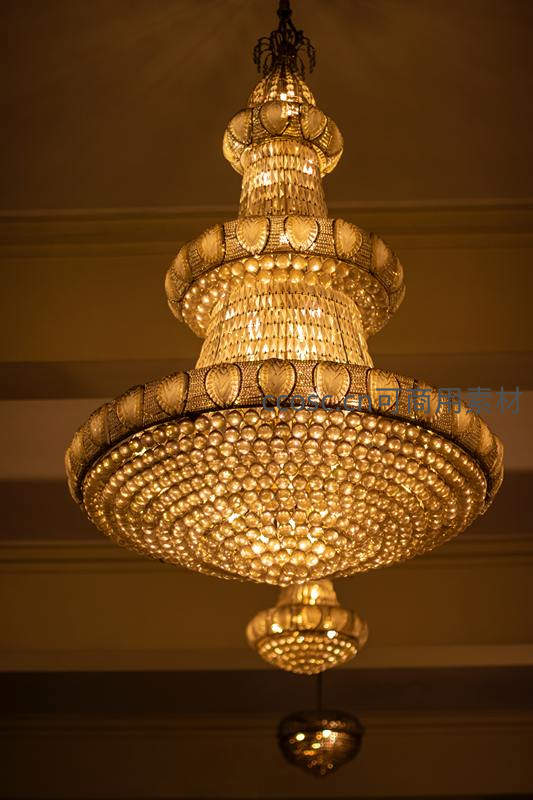 华丽水晶吊灯散发古典金色光芒