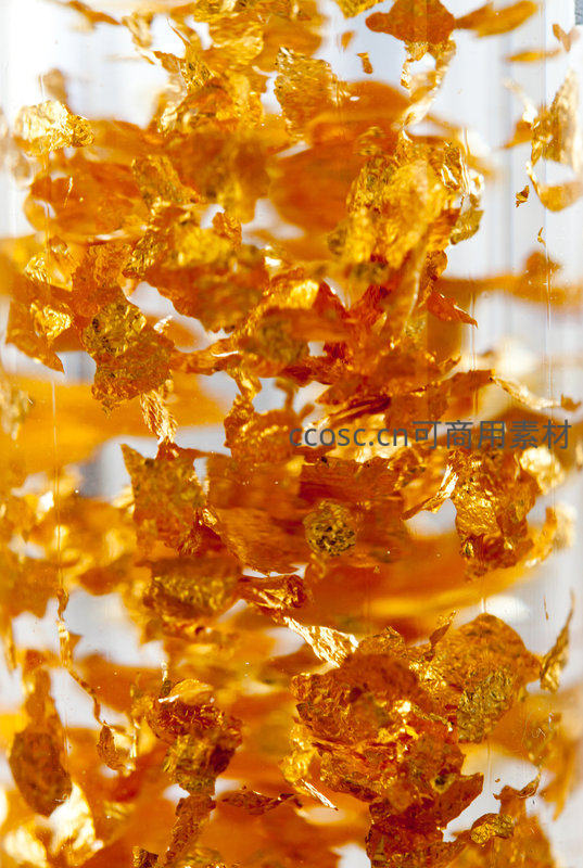金箔在透明容器中悬浮飘舞如梦似幻