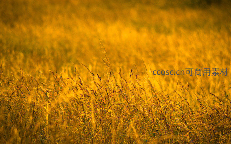 在温暖的夕阳光线下,一片广阔的草甸被染成耀眼的金黄色。微风拂过,草尖轻摇,营造出宁静而梦幻的自然画卷,令人沉醉于大地的温柔怀抱。