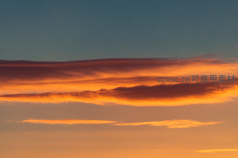 夕阳西下,天空被染成一片温暖的橙红色,层层叠叠的云朵如火焰般燃烧,营造出宁静而壮丽的黄昏景象。