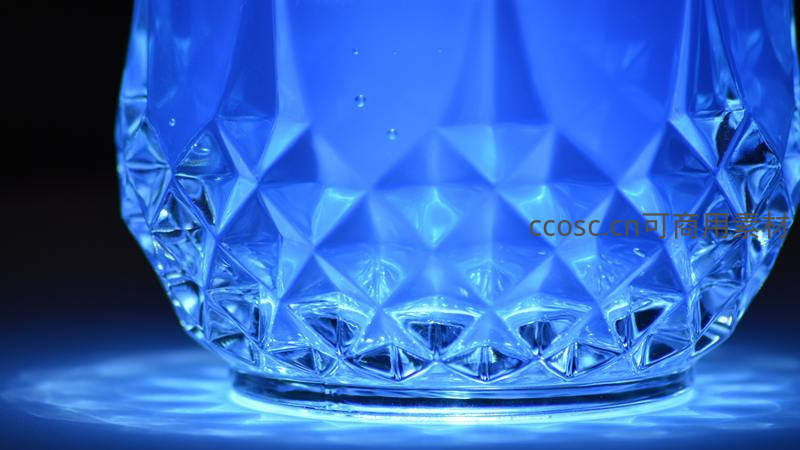蓝色水晶杯底特写光影效果