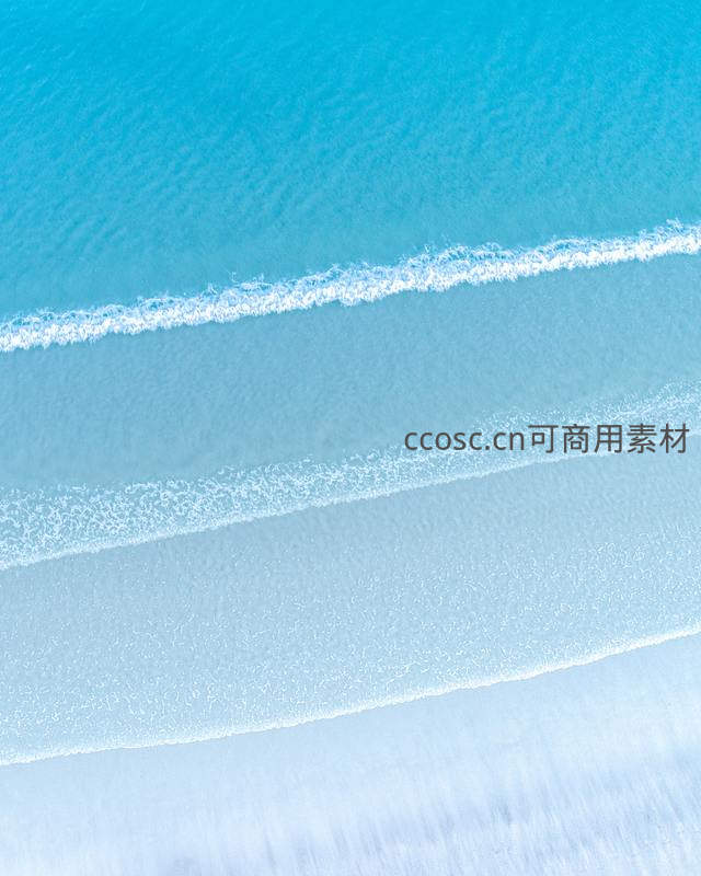 从高空俯瞰碧蓝海水轻抚洁白沙滩,层层浪花如丝带般延展,营造出宁静而壮丽的热带海滨景象。
