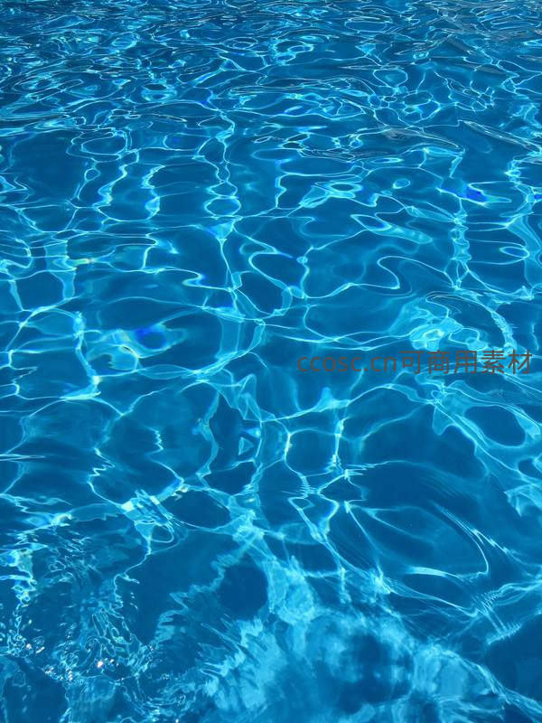 阳光穿透清澈湛蓝的泳池水面,形成流动的光影涟漪,如同无数碎钻般闪烁,带来清凉、宁静与度假般的视觉享受。