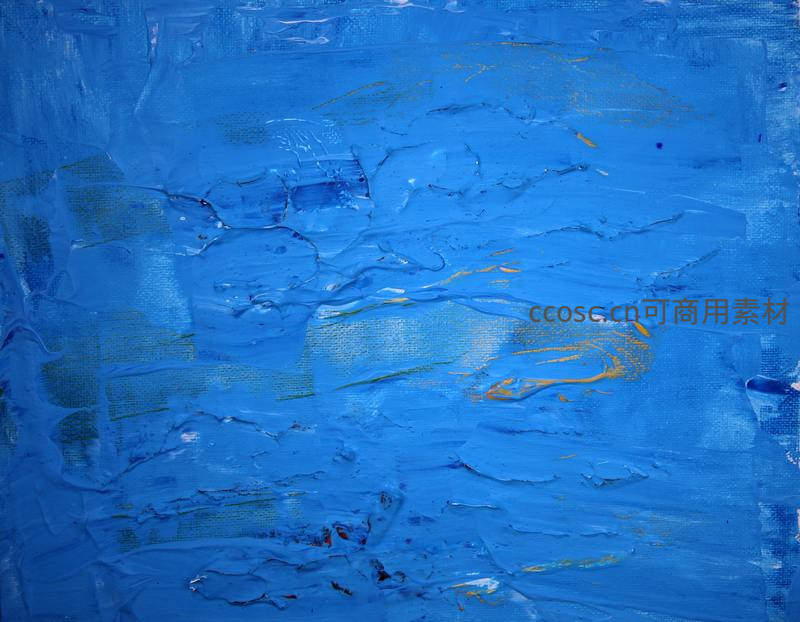 以蓝色为主调的油画作品,厚重的颜料堆叠形成丰富肌理,几抹跳跃的金色点缀其中,增添了一丝温暖与奢华感。