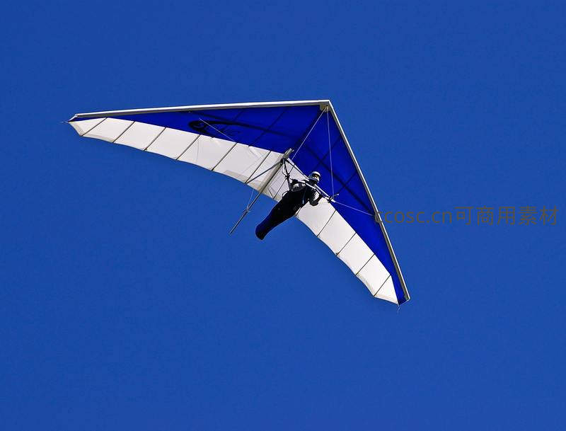 一名滑翔者驾驭着蓝白相间的滑翔翼,在无垠的蔚蓝天空中自由翱翔,享受着与风共舞的刺激与宁静。