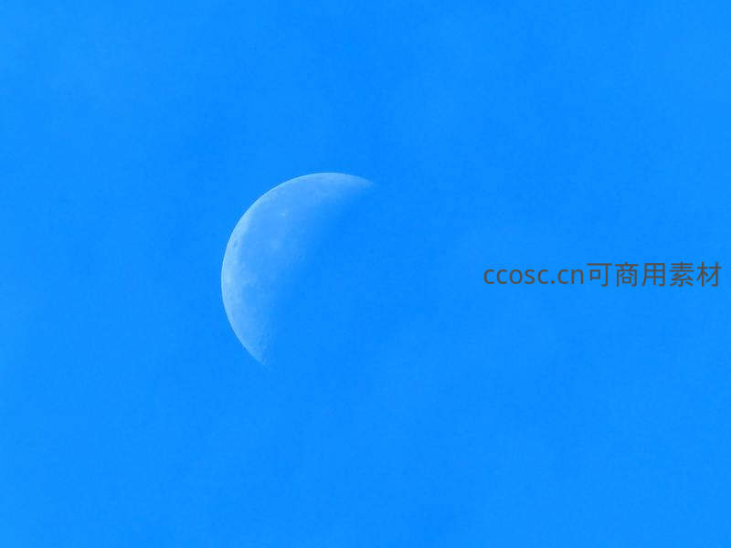 朦胧月牙悬于纯净蓝幕之上