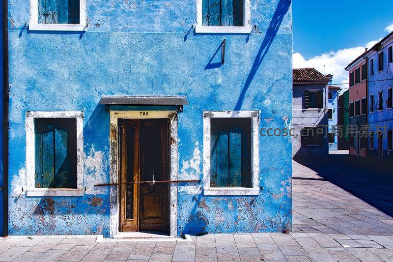威尼斯蓝色老屋,斑驳墙面诉说时光