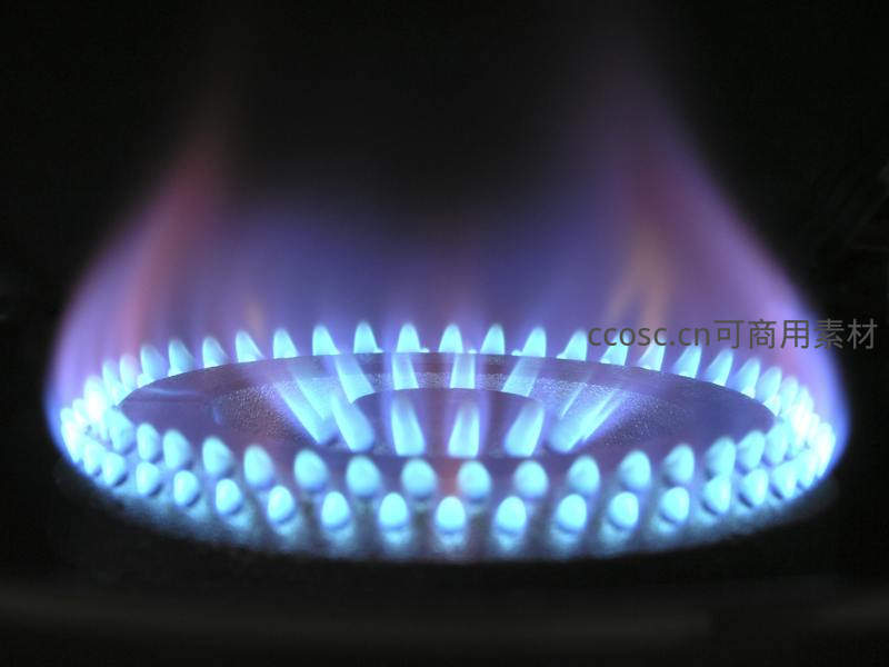 燃气灶蓝色火焰燃烧特写