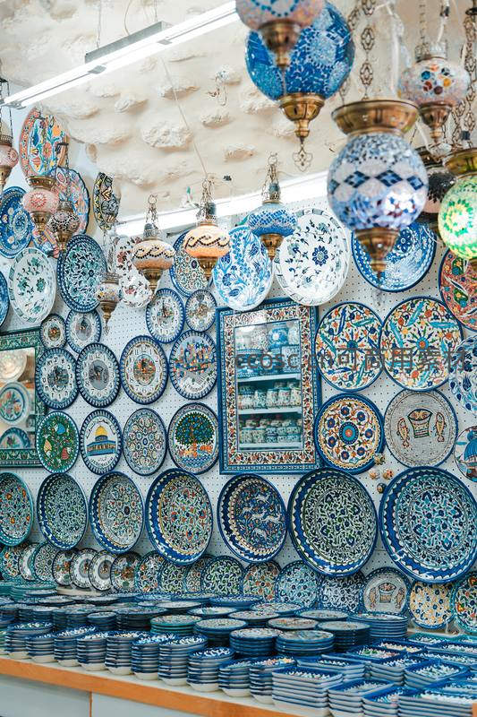 土耳其手工艺品店,彩绘盘盏琳琅满目
