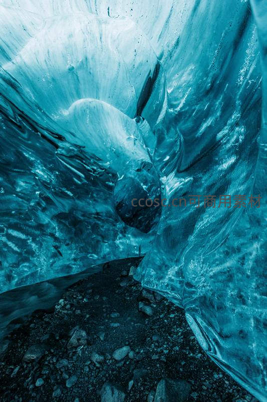 冰川洞穴内部,晶莹剔透的蓝色世界