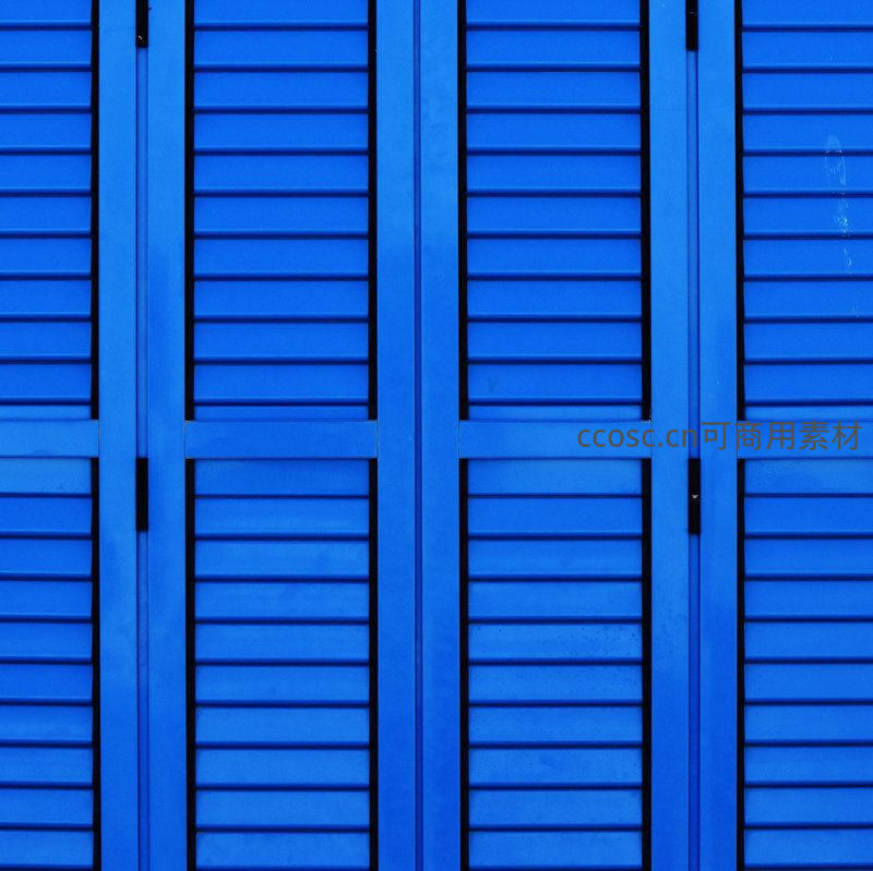 纯蓝色的百叶窗以严谨的几何线条排列,构成强烈的视觉节奏感,展现现代建筑的简约美学与秩序感。