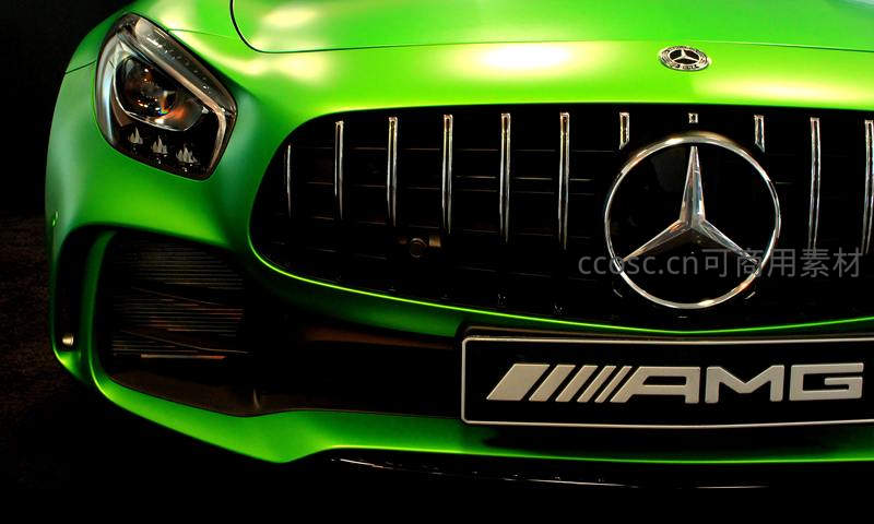 炫酷绿色AMG前脸特写,彰显性能与奢华