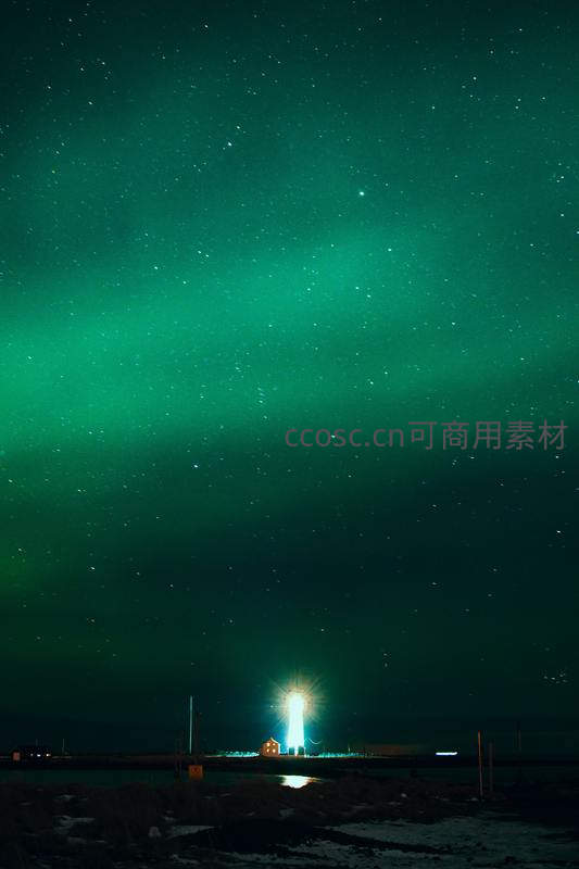 极光下的灯塔夜景,星空璀璨如梦似幻