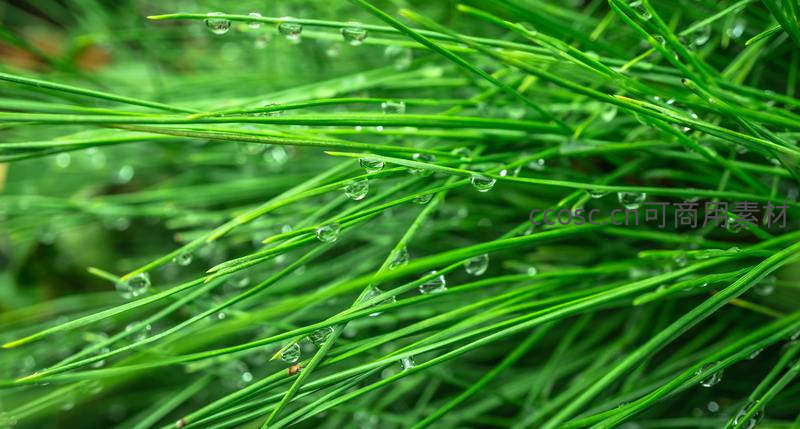 细长的青草叶上缀满剔透的露珠,在晨光中闪烁微光,捕捉了自然界最细腻、最宁静的瞬间。