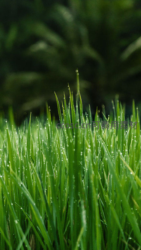晨露缀青草,微光闪烁如星点