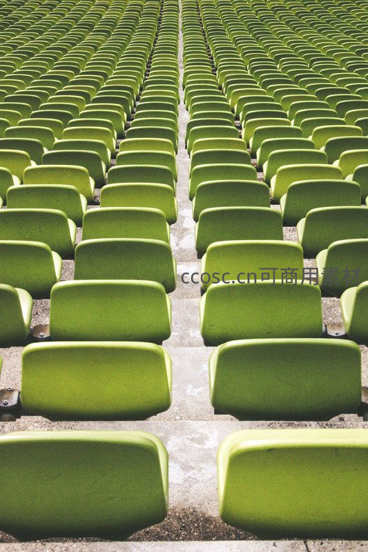 整齐排列的绿色体育场座椅