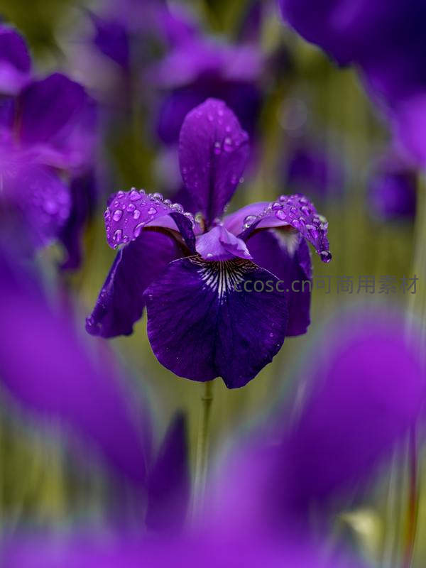 雨后紫鸢尾的晶莹之美