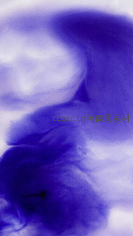 深邃的蓝紫色颜料在水中缓缓扩散、交融,形成如云雾般飘渺的形态,展现出液体动态的美感与抽象艺术的无限想象空间。