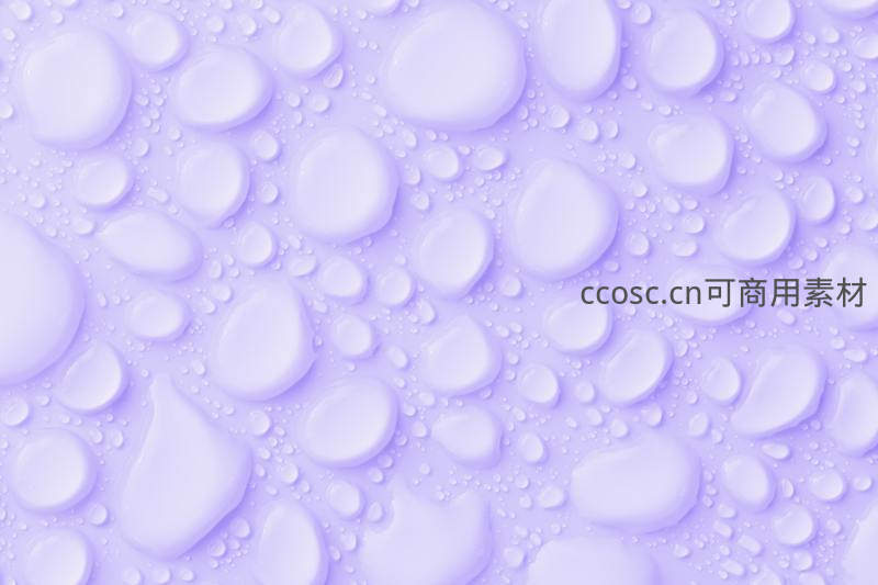 无数大小不一的淡紫色水珠均匀分布于光滑平面,晶莹剔透,带来宁静、清新的视觉感受,适合作为背景纹理使用。