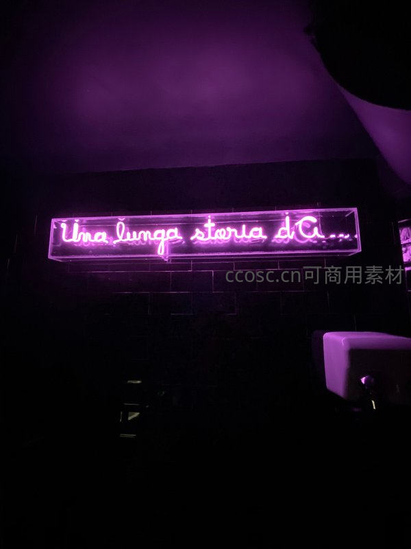 紫色霓虹灯牌在黑暗中散发柔和浪漫光芒