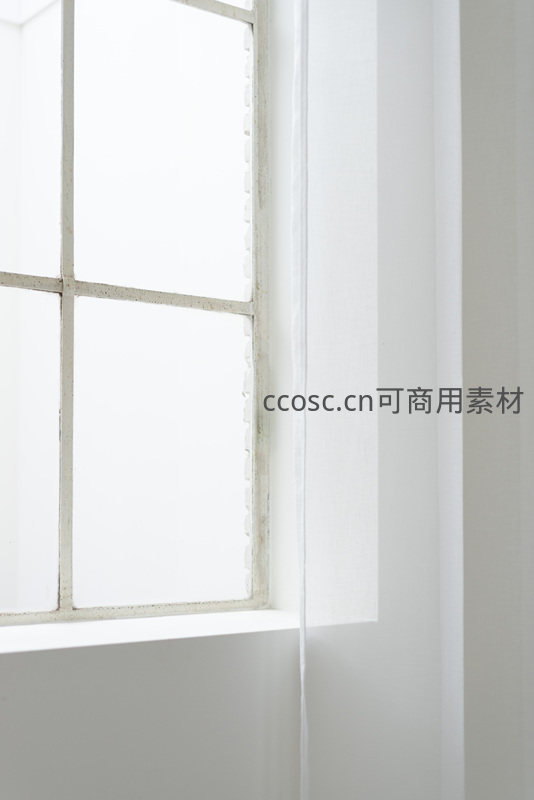 阳光透过格子窗洒在洁白的墙面上,轻盈的纱帘随风微动,营造出宁静而温馨的居家氛围,适合冥想与放松。