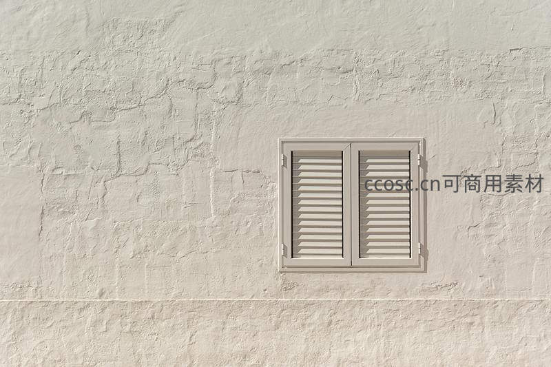 米色百叶窗嵌于斑驳墙面的几何美感