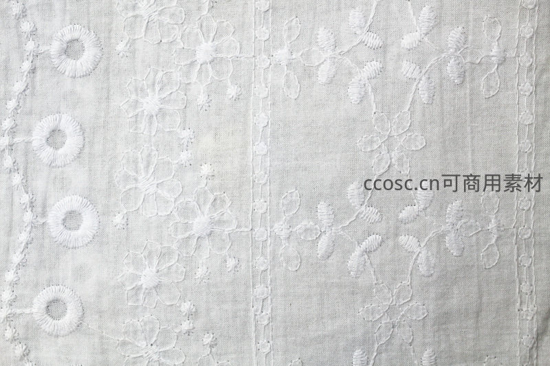 精致白色刺绣布料,古典花卉图案特写