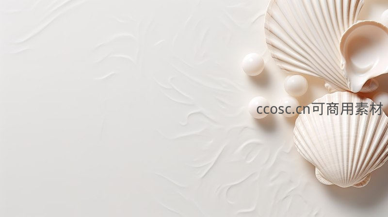 贝壳珍珠静置柔白纹理背景优雅构图