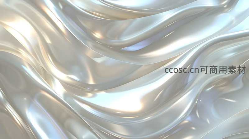 光滑如液态金属般的银色波浪起伏流动,光影交错间展现极致柔美与科技感,适合作为高端品牌背景或视觉艺术素材。