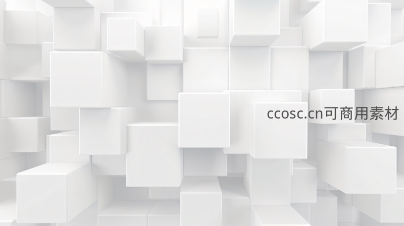 由无数白色立方体堆叠错落形成的三维空间,营造出干净利落的现代感和秩序美感,适合用于科技、设计或极简风格展示。