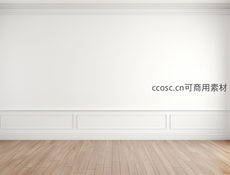 纯白墙面搭配浅色木地板,简洁的线条装饰勾勒出宁静的空间感,是现代家居或商业展示的理想背景。