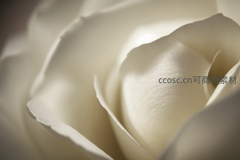 镜头聚焦于白玫瑰层层叠叠的花瓣,细腻的纹理与柔和的光影交织,凸显其纯洁与优雅,传递宁静浪漫的情感氛围,适合婚庆或艺术创作。