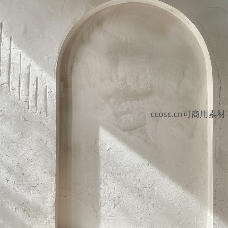 一道优雅的弧形墙体,表面布满手工抹灰的肌理,在斜射阳光的映衬下,光影交错,凸显出建筑的空间感与艺术性。