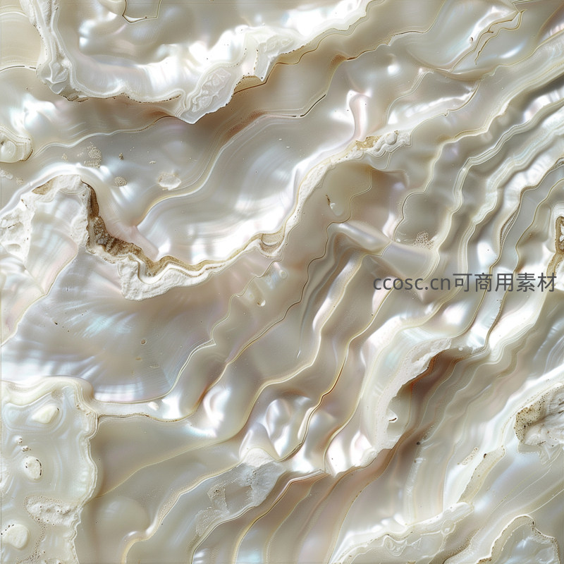 近距离观察珍珠母贝内部,其层层叠叠、泛着虹彩光泽的纹路如同流动的河流,散发着温润而高贵的自然之美。