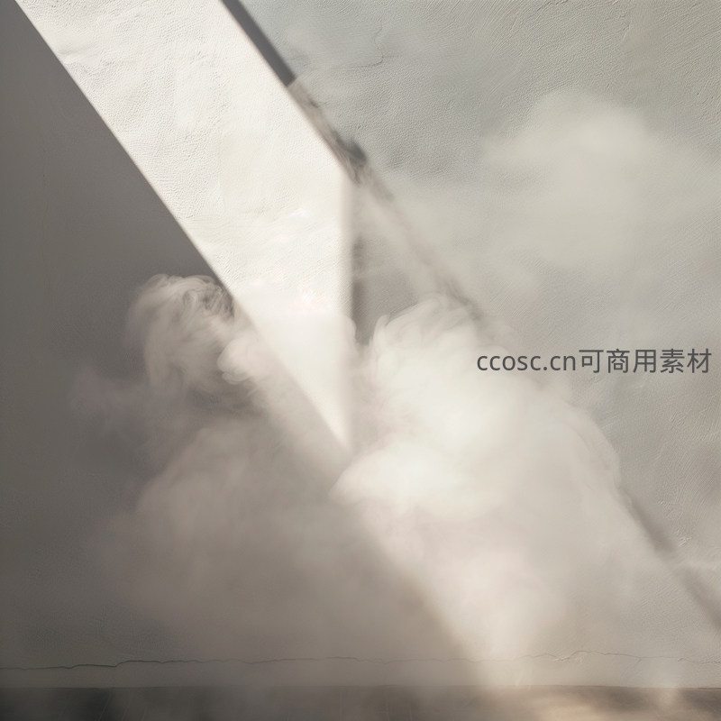 一束锐利的几何光线斜射入弥漫着烟雾的空间,明暗对比强烈,营造出神秘而富有戏剧性的氛围,极具现代艺术感。