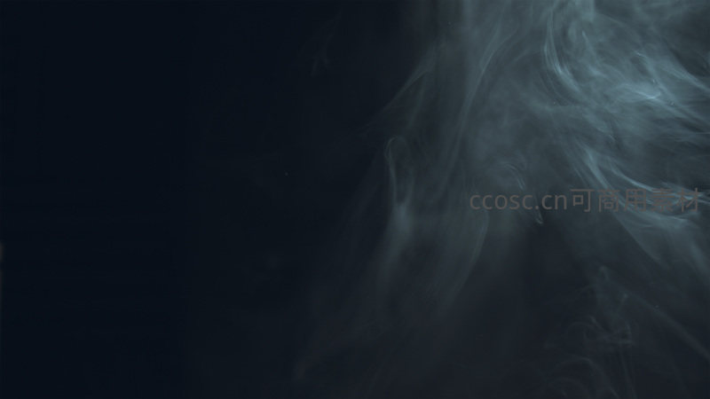 冷色调的烟雾在漆黑背景中缓缓飘动,形成梦幻般的视觉效果,适用于电影海报、音乐专辑封面或情绪化设计场景。