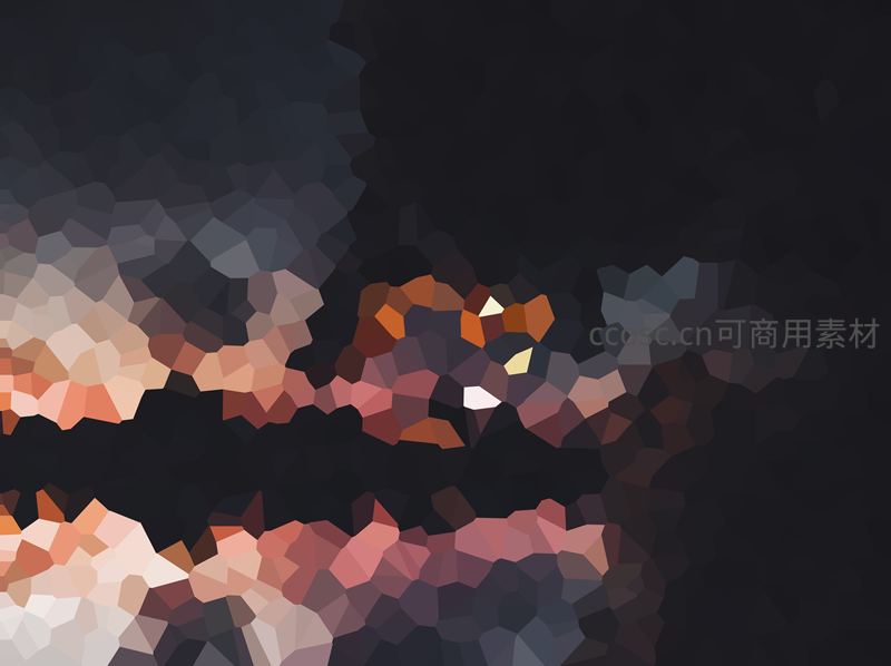 在深黑背景上散布着橙红与浅白的多边形光斑,如星火般闪烁,营造出宇宙般的静谧与梦幻感。