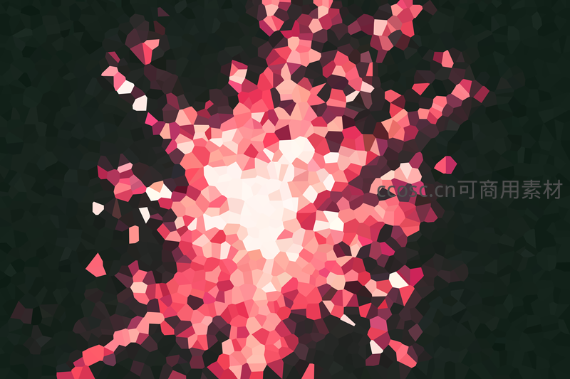 由粉色多边形构成的粒子爆发图案,中心光芒四射,边缘散落如花瓣,营造浪漫梦幻氛围,适合用于视觉传达设计。