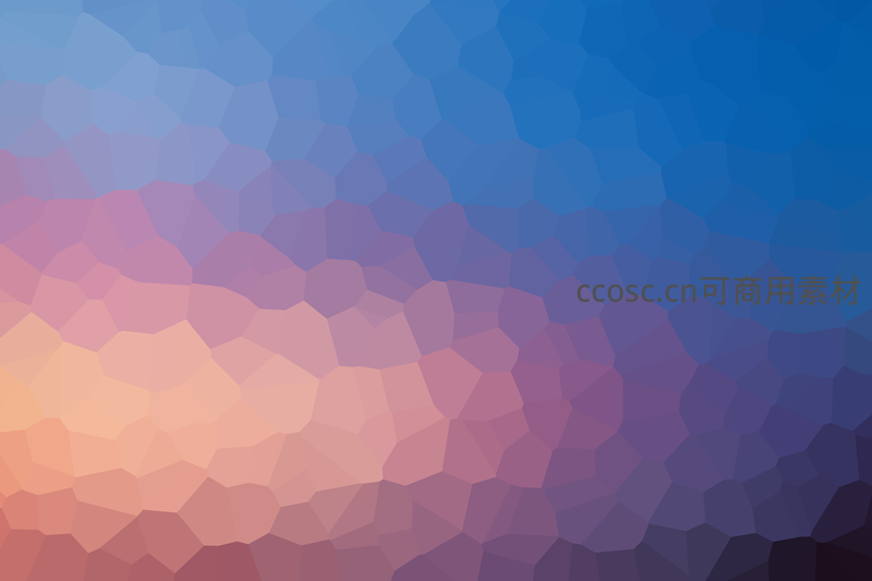 充满梦幻感的多边形拼接背景,色彩从粉橙过渡至深紫与湛蓝,营造宁静而浪漫的视觉氛围。