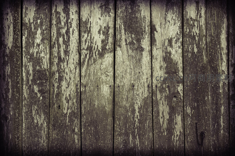 经过怀旧色调处理的老旧木门,油漆剥落处显露出木质肌理,边缘略带暗角,整体散发着经典、温暖且略带忧郁的复古情怀。